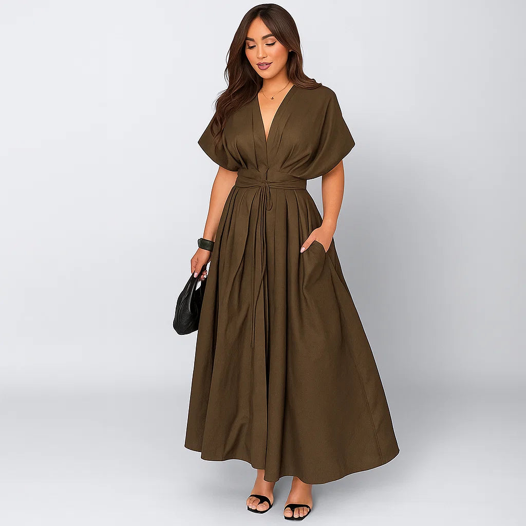 TRAFZA(服饰) • Elegant Spring/Summer Vintage Dress with V-Neck and Draped Detail
