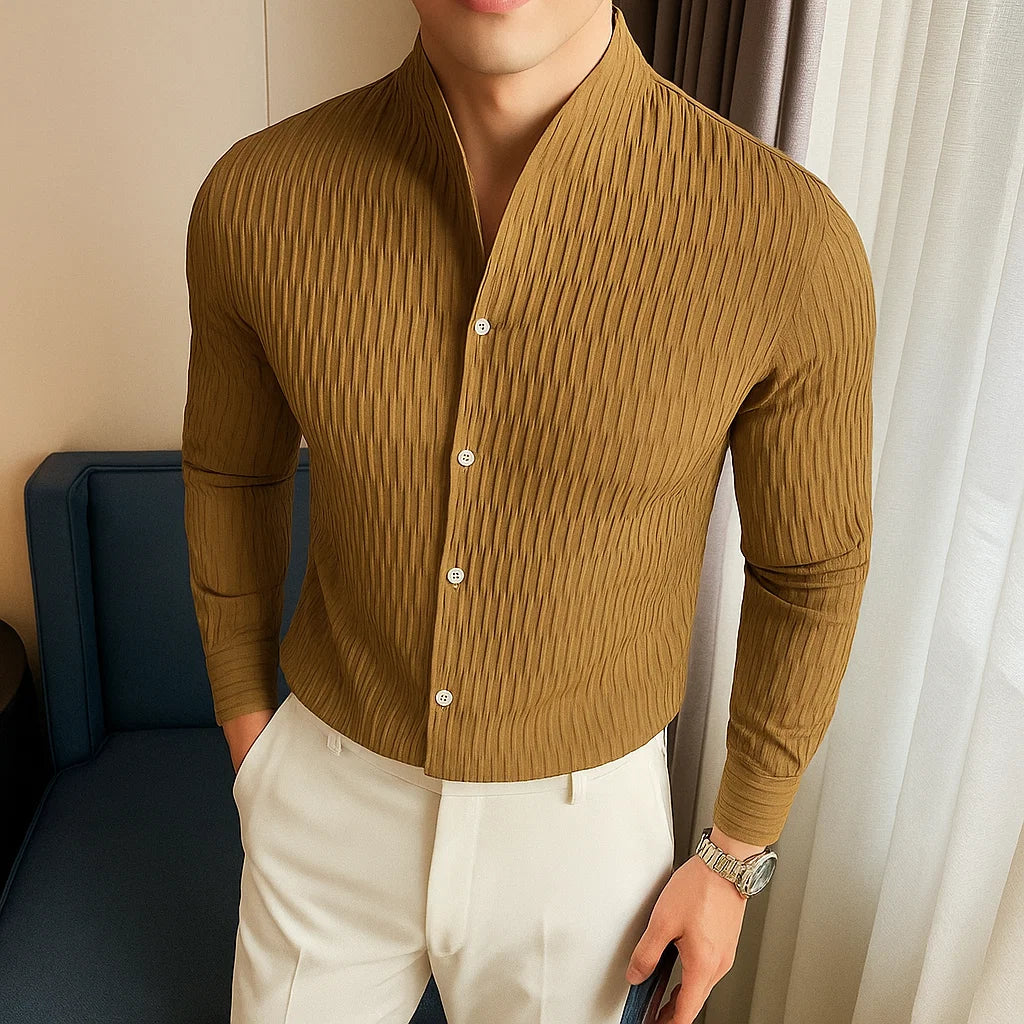 Step up your style game with this luxurious and slim fit British style long-sleeved shirt.