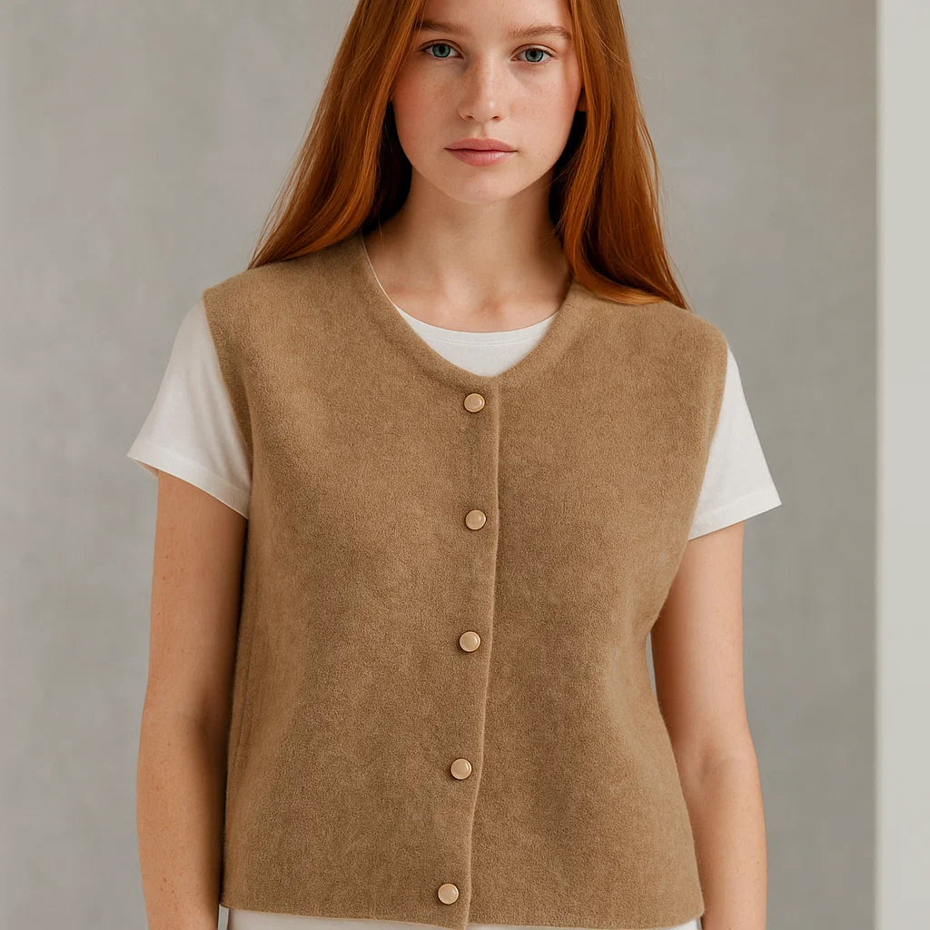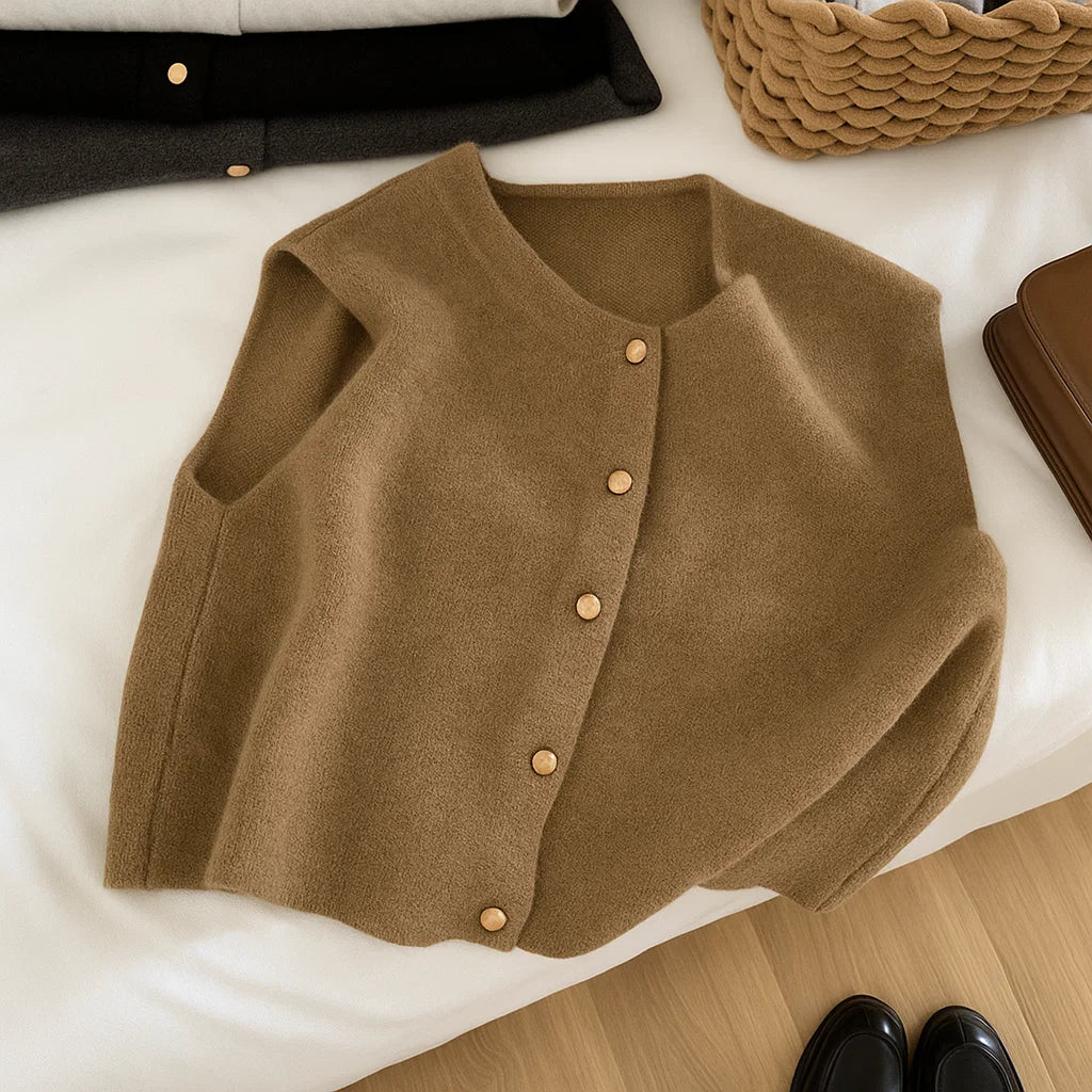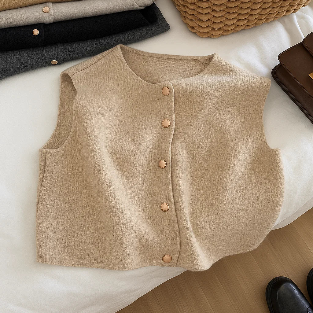 Elevate your autumn wardrobe with this elegant Korean knitted sleeveless cardigan.