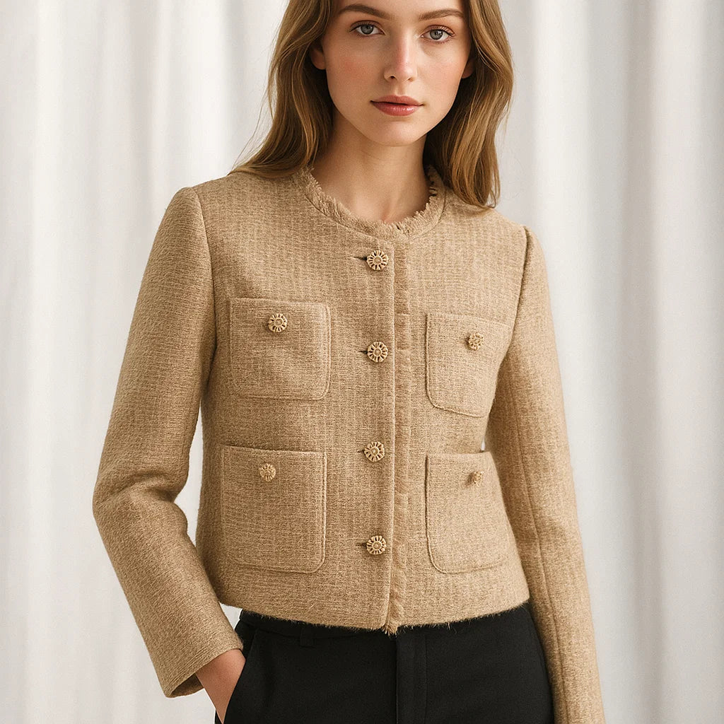 Elevate your style with this chic female tweed basic jacket coat, a timeless addition to your wardrobe.