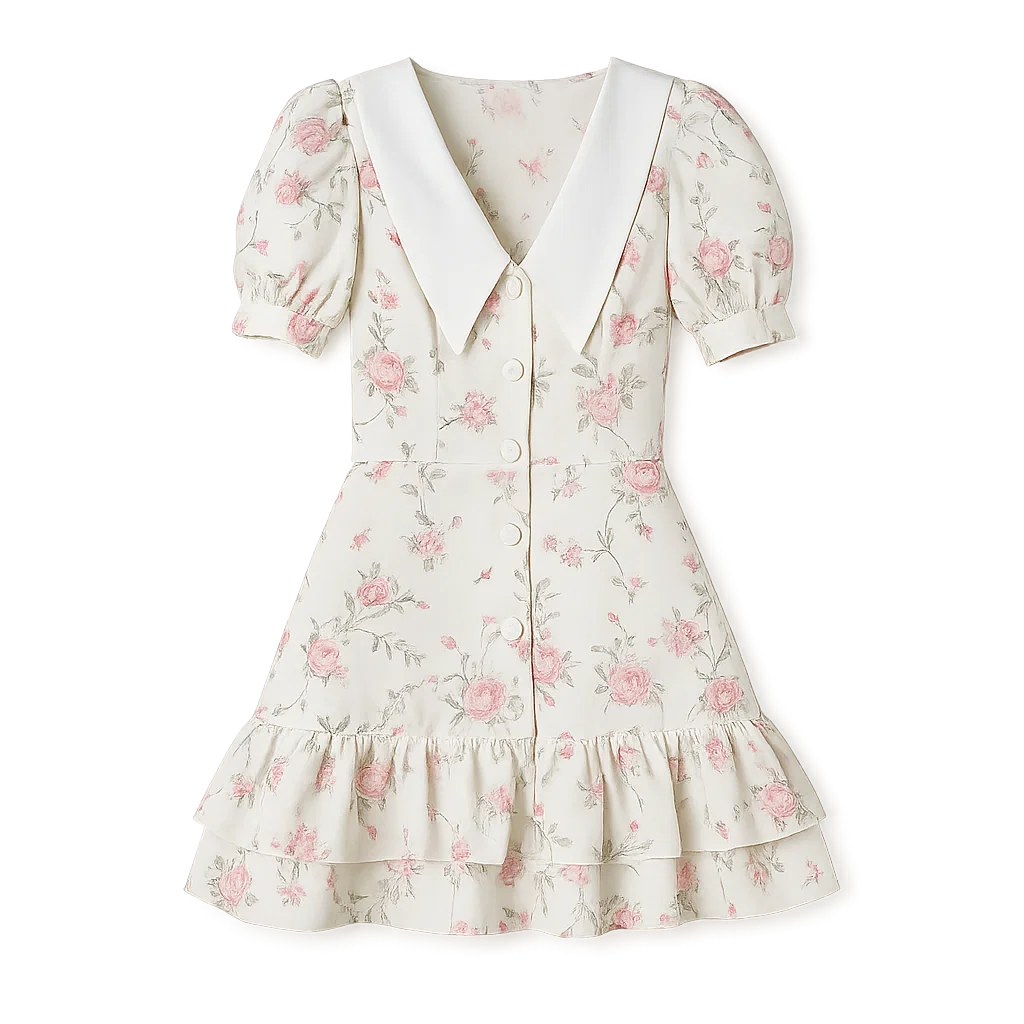 Crafted with a high-waisted silhouette and a flared skirt, this dress exudes a fresh and sweet style, perfect for various occasions.
