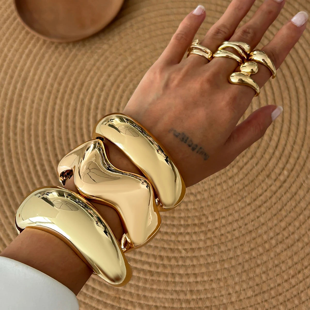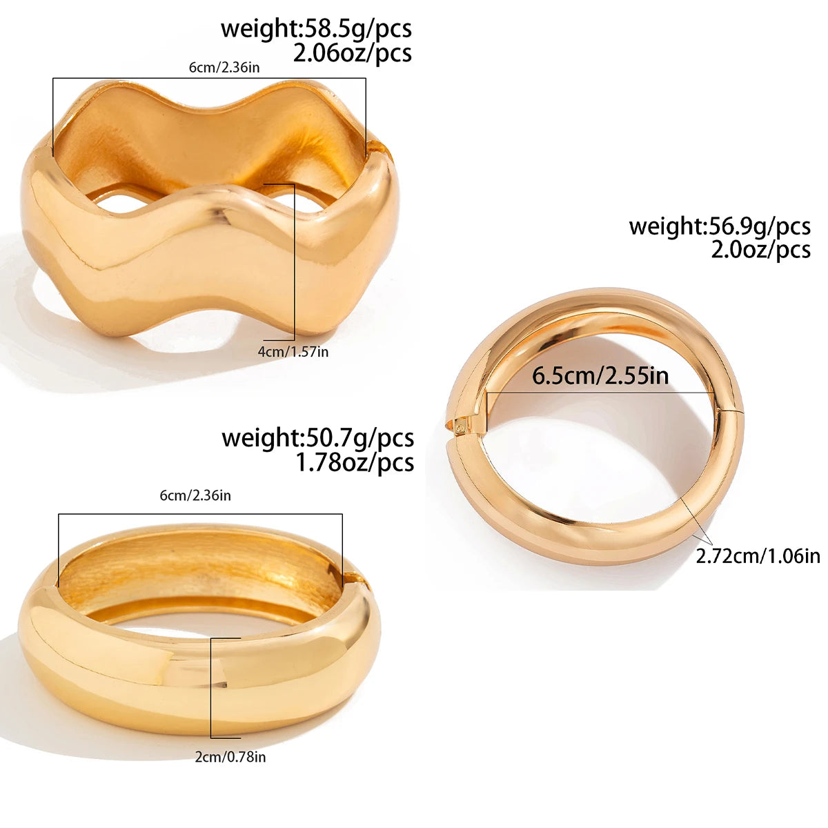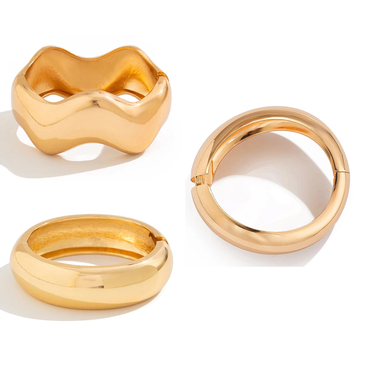 Ingemark 3 Styles Punk Hip Hop Smooth Heavy Metal Spring Bangles for Women Fashion Statement Gold Color Bracelets Men Jewelry