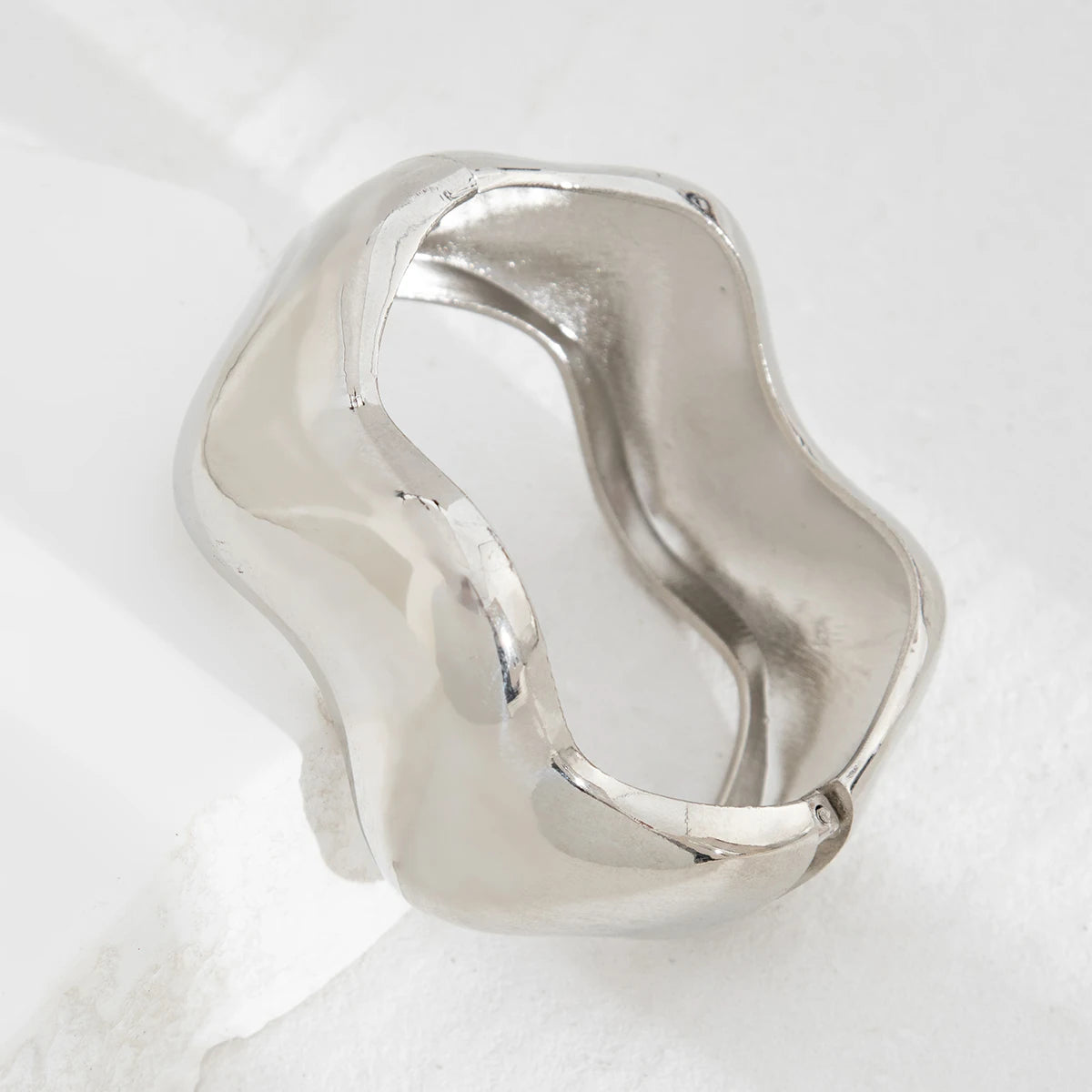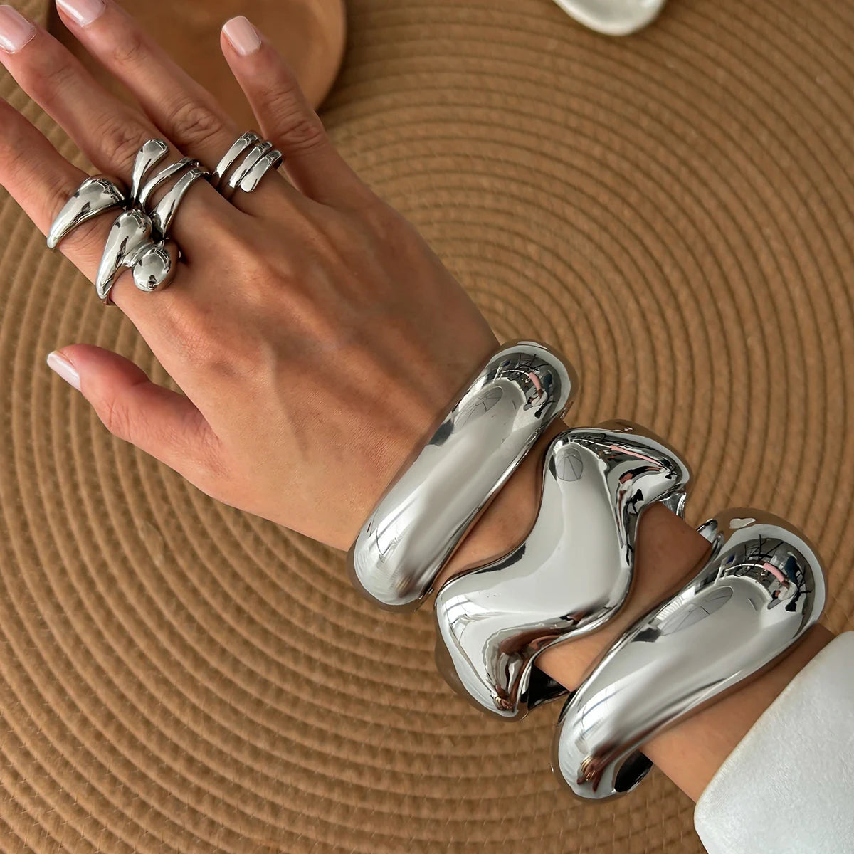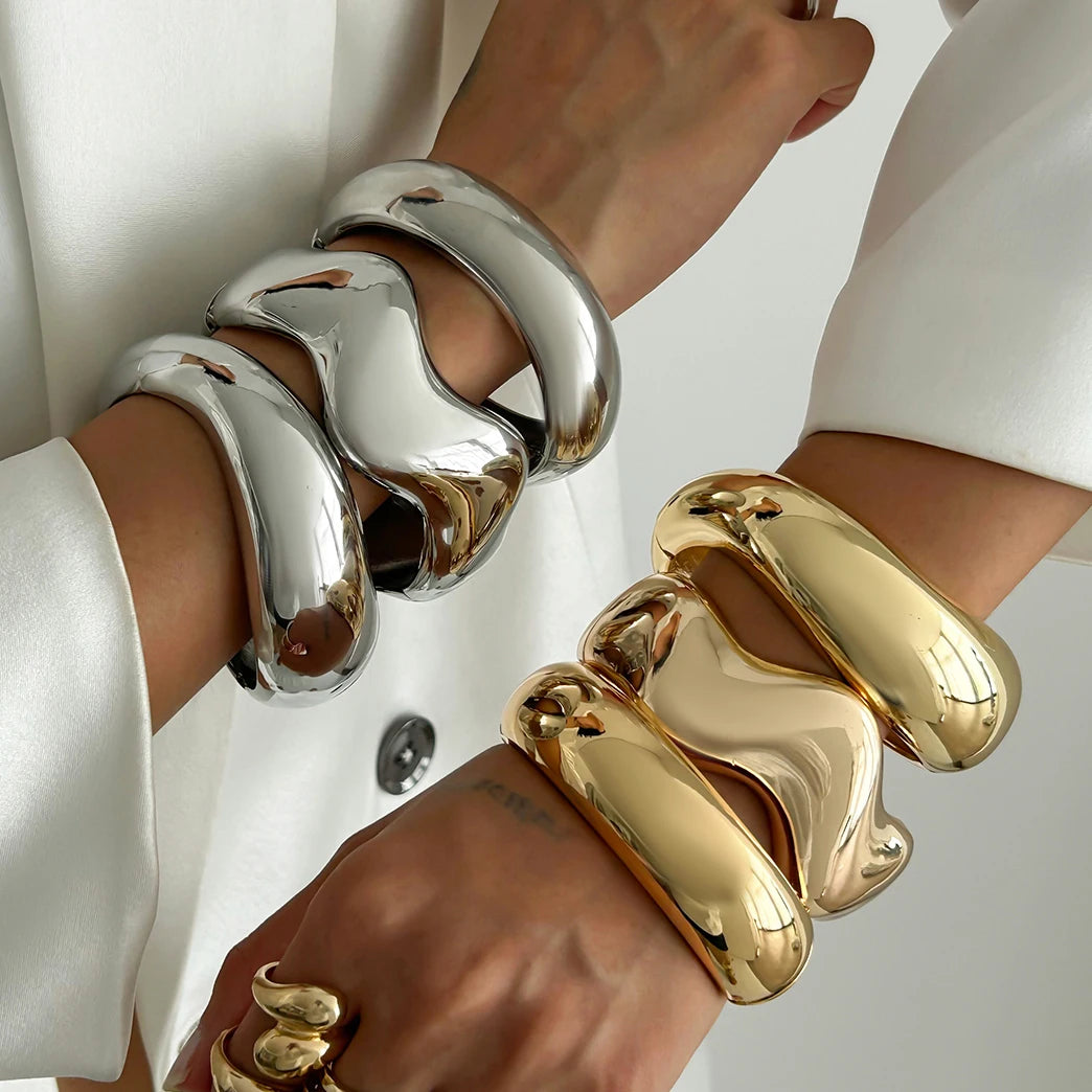 Ingemark 3 Styles Punk Hip Hop Smooth Heavy Metal Spring Bangles for Women Fashion Statement Gold Color Bracelets Men Jewelry