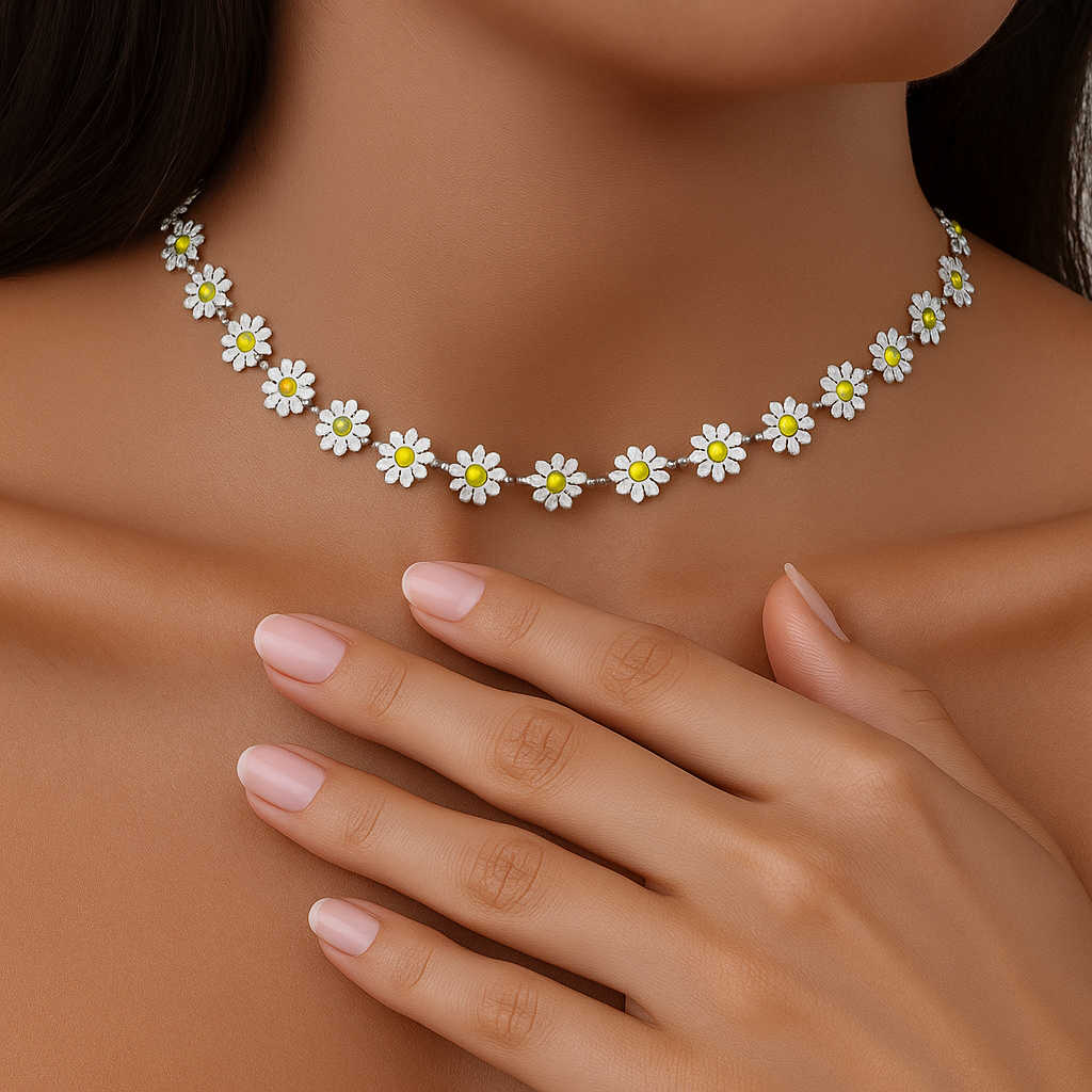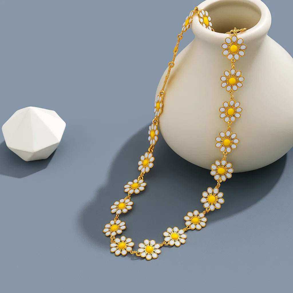 The Kpop Flower Daisy Clavicle Chain Necklace features a trendy design, perfect for fashion-forward women who want to stay in vogue.