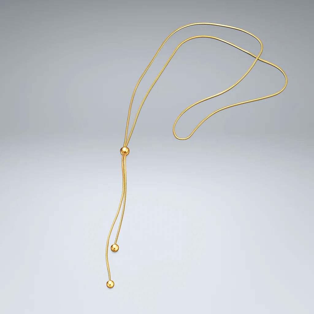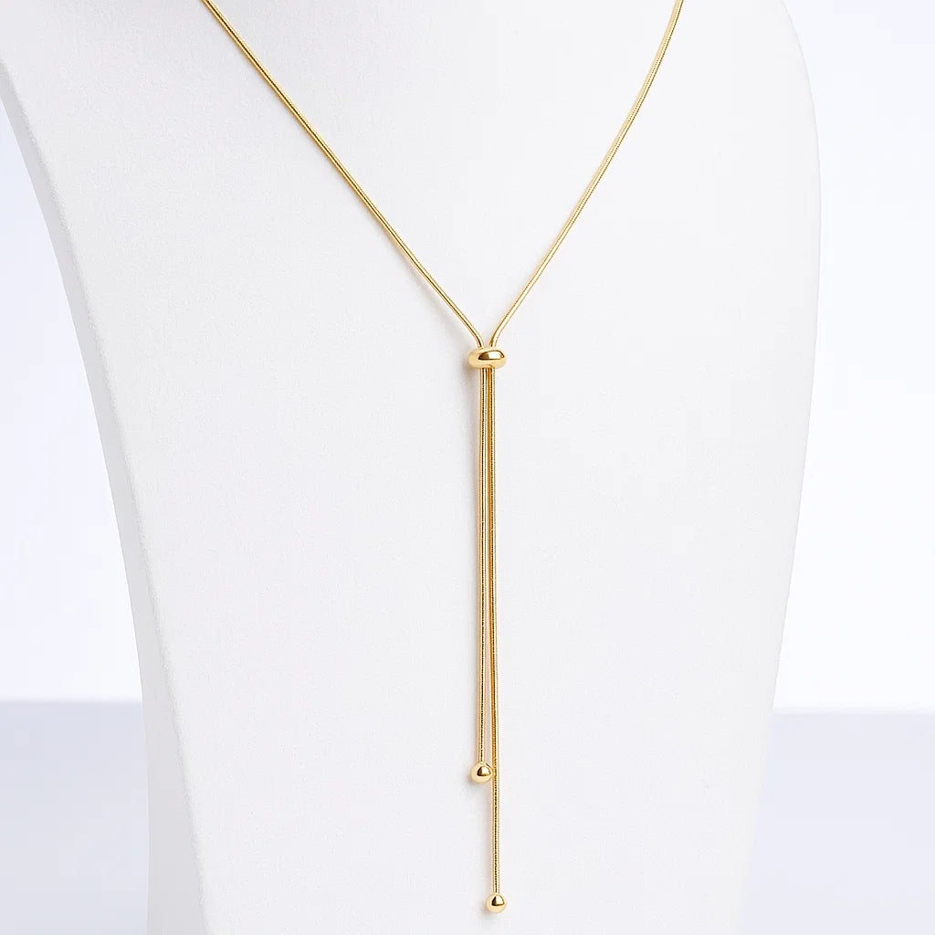 Available in a gold colour, this necklace is a chic and elegant addition to any jewellery collection.