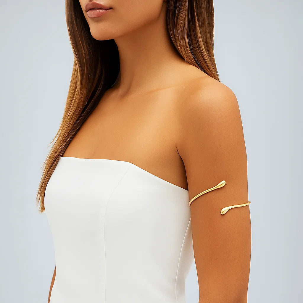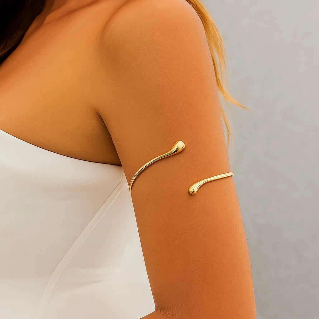 This Lacteo cuff bracelet combines trendy geometric design with a twisted water drop shape, making it a stylish accessory for women.