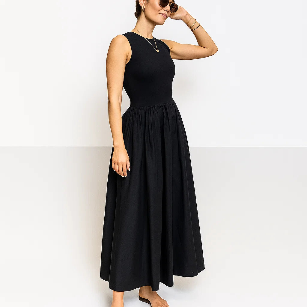 MUJER Black Pleated Long Dresses for Women Knitted Sleeveless Maxi Dress Woman Vintage Party Womens Dresses Spring Casual Dress