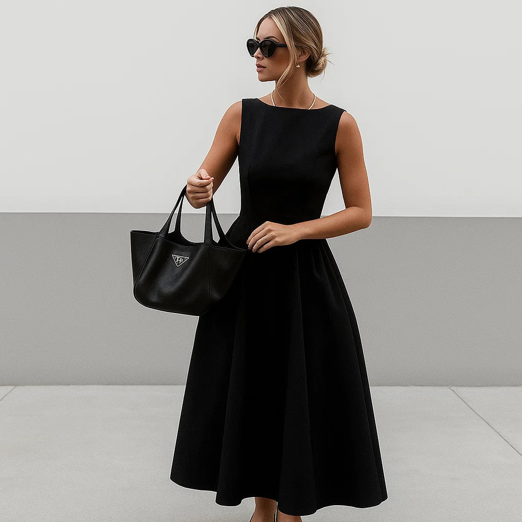 - Vintage-inspired black pleated dress for women