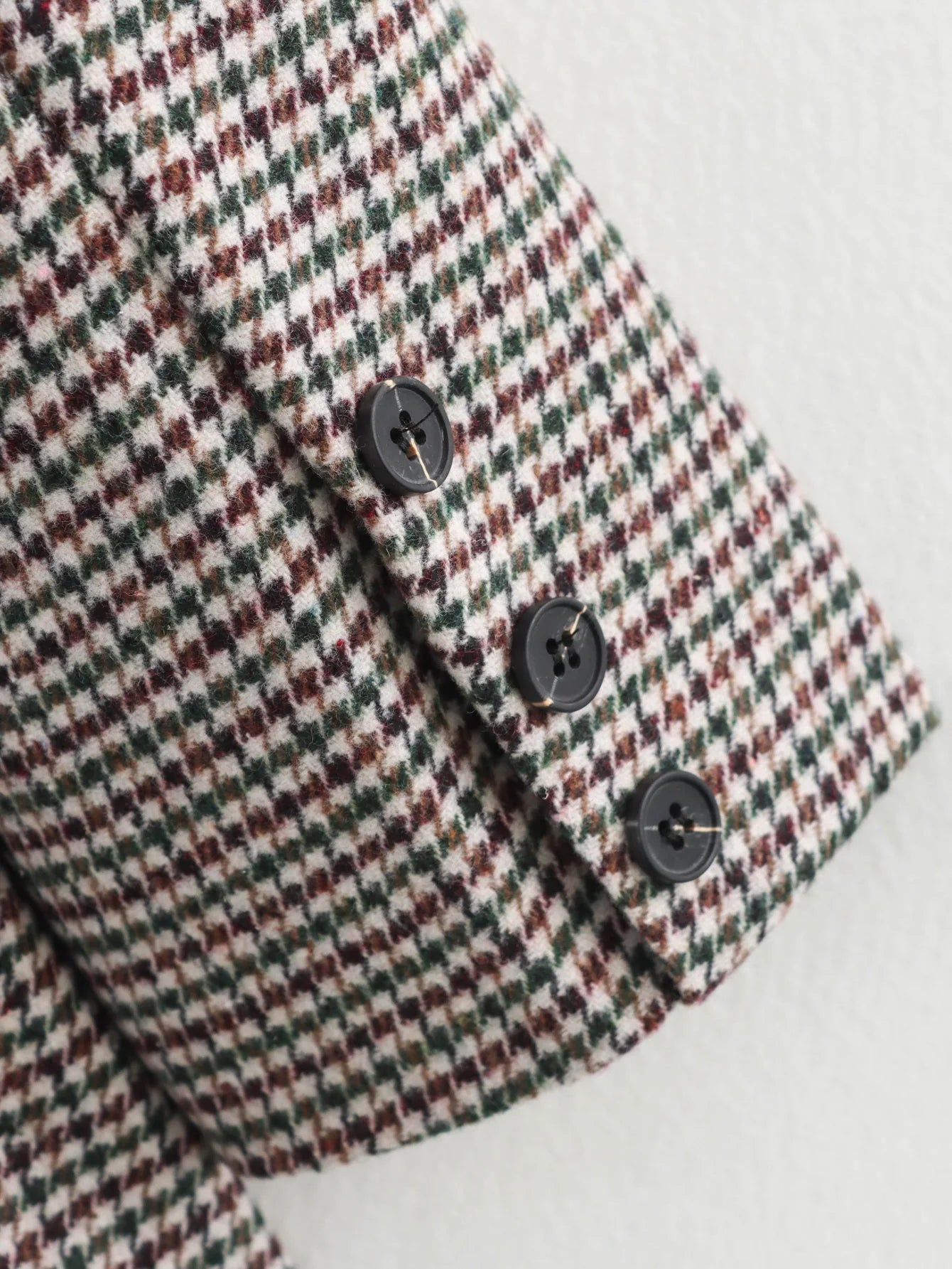 Elevate your autumn wardrobe with our chic houndstooth suit. Perfect for casual wear, this jacket features a stylish button closure and long sleeves, adding a touch of sophistication to your look.