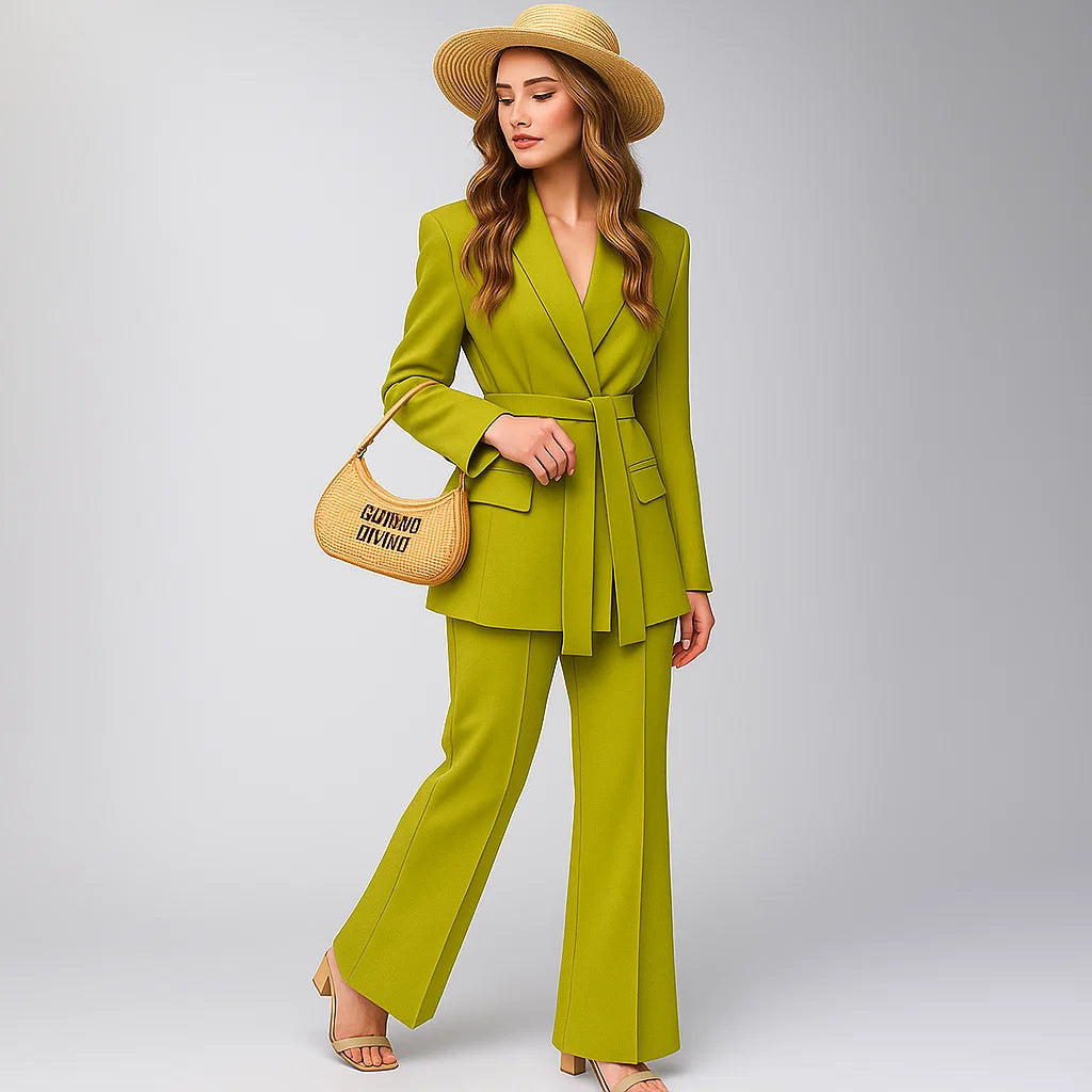 Step into the office with confidence and style in our elegant solid office lady suits. The sashes shrug and single-breasted straight blazers add a touch of sophistication, while the chic flare pants bring a modern twist to your professional wardrobe.