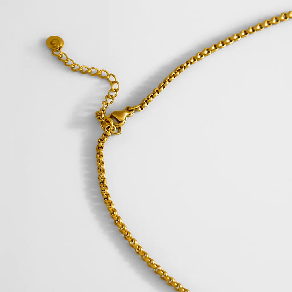 Crafted from high-quality stainless steel and featuring PVD real gold plating, this necklace offers durability and a luxurious look without compromising on water resistance.